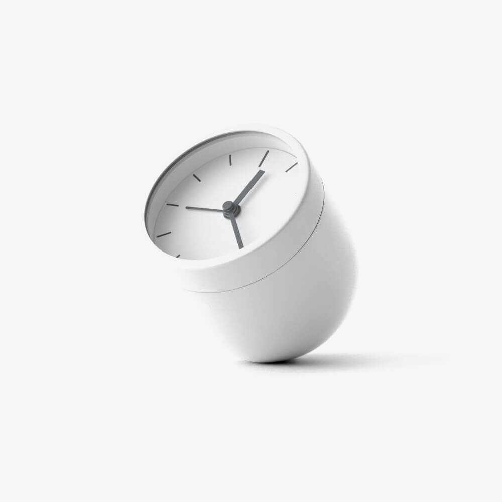 The quirky take on the traditional alarm clock uses a rounded no-tilt design so that the clock never falls over. Plus, the interactive design requires you simply to turn the clock face down to turn it off.